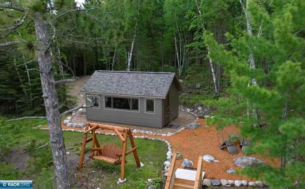 Possibly the best view on Lake Vermilion! Breathtaking views of 10+ islands. Everything on the property is new & ready for you to enjoy. This 16.5 acre parcel sits on a point with 180 degree views. 365' of elevated and flat shoreline.Property includes a new Amish-built cabin & outhouse with Andersen Windows & storm doors, Diamond Kote siding, closed cell spray foamed floor in cabin, new king-sized bed & coverings, 2 new futons, 400 amp electric service, new SS fridge/freezer, 20' one trip shipping container, second storage shed, new stairs down to new 40’ L shaped dock w/two cedar benches & swim ladder & new boat lift, additional 40’ dock & sitting deck, multiple fire rings & outdoor furniture, two viewing benches on the point, cedar swing, aluminum picnic table & bbq grill.Huge red & white pines, birch, poplar, maple & more. Property is dotted w/large boulders. Located very close to the deepest fishing holes on the lake. End of dock is 14' deep and great walleye fishing!