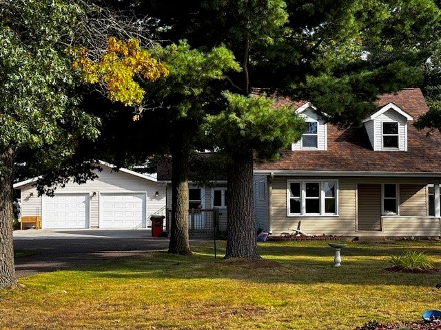 Appealing 1 1/2 story chalet home on Lake Wissota. Large kitchen and main floor bedroom and laundry. Fenced in backyard with gardens and beautiful views of the lake. Fresh paint in several rooms. Home interior will need some "lipstick and rouge" but a great floor plan. Great fishing and boating with nice access to the "Big Lake". More info attached. Three shelves in closets are included. Home cameras are excluded. Oversized two car garage for work area. Generator hook-up. Septic only 3 years old and just pumped.