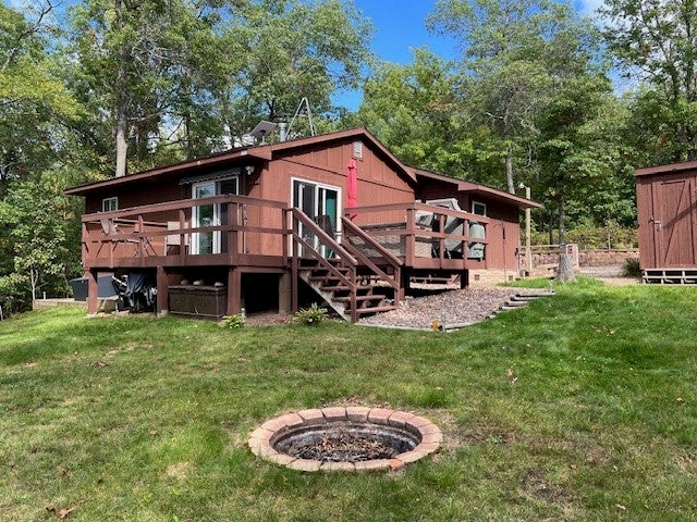 This is the true definition of a quaint Northwoods cabin! Incredibly clean, neat and just the perfect size for your weekend getaways, this cabin sits nicely atop a small ridge with the most gorgeous views facing West. All new LVP flooring, updated bathroom and a 12x20 area recently added serves as an entry/mud room, office, laundry room and still allows enough room for a pull out couch for extra sleeping space. The 200 feet of sandy frontage on this peaceful, serene lake allows for plenty of space from your neighbors and the 3 extra sheds on the property provide an abundance of storage. Recently upgraded wrap around driveway with professionally landscaped retaining wall. The wood stove provides more than enough warmth during colder months and the baseboard heat and spray foam insulated crawl space make this a year-round pleasure!