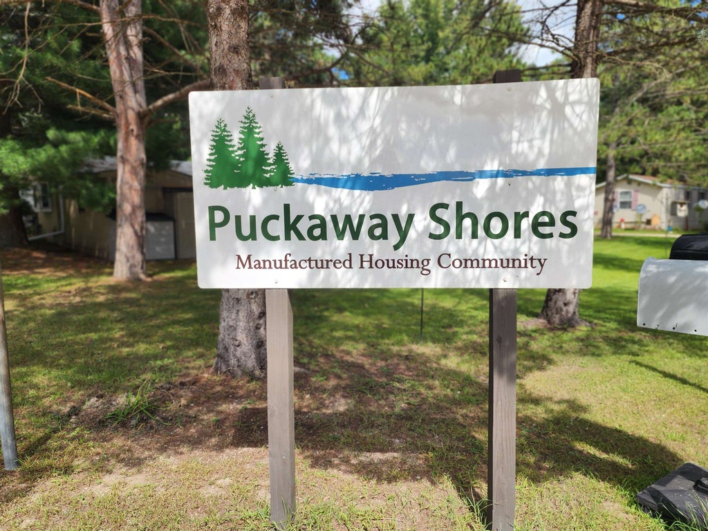 Welcome to this cozy and affordable 2-bedroom, 1-bath manufactured home with a metal roof located in Puckaway Shores Manufactured Housing Community. This 4 seasons home is located on a rented lot can be used for year-round living, downsizing or a low-maintenance getaway. Inside, you'll find an open concept floor plan with large living area and kitchen. Measurements are approximate. Buyer must apply and be approved by Puckaway Shores ownership. Monthly fees are $322. Lake Puckaway is in walking distance and Boat Slip is available. Schedule your showing today and see why Puckaway Shores is the perfect place to call home!