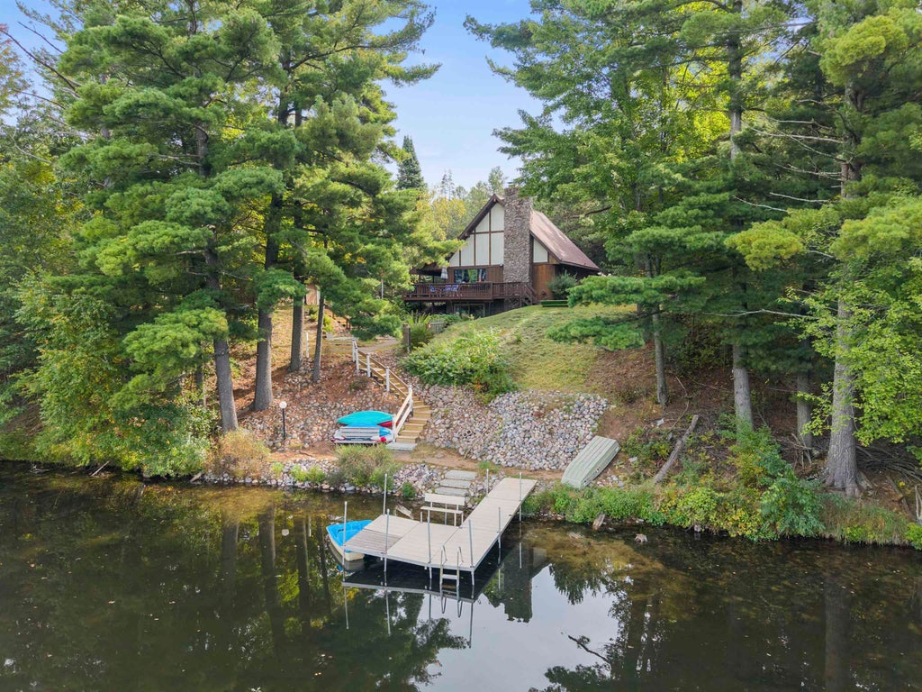 Four acres. 240 feet of Twin Lakes frontage. Freshly opened sightlines to the water thanks to selective tree clearing. Park under the pines, step onto the covered front porch, and take in the wraparound deck views. Inside, the warmth of a 2-story fieldstone fireplace, a breezy 3-season room, loft with built in cubbies, and a walkout lower level with a cozy wood stove. Fish off your private pier, launch the kayak before breakfast, and spend afternoons exploring Rome’s four lakes, Sand Valley and Lake Arrowhead golf, ATV trails, and public forest lands. This home also shines as a short term rental with a strong booking record. Keep the memories for yourself, or let the home work for you between visits.