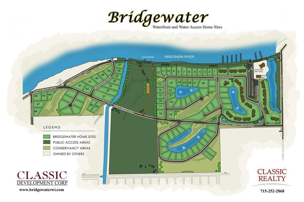 Lot #2: Bridgewater is Central Wisconsin’s premier new development located along the south shore of the Wisconsin River in the Village of Biron. Enjoy year round living in this incredible new project. Come and see all that Bridgewater has to offer you!