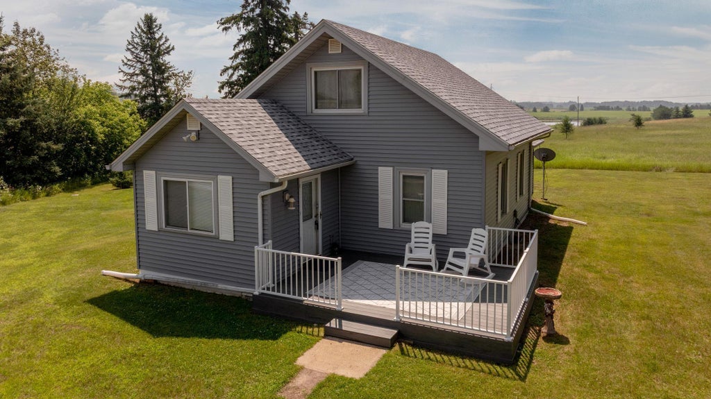 Adorable country charmer with a view! This classic 1.5-story farmhouse sits on 6 peaceful acres with a scenic view of Clough Lake and is just a short drive from Pine River. With 4 bedrooms and a beautifully remodeled bathroom featuring a walk-in shower, this home combines vintage charm with modern updates. Enjoy morning coffee in the sunny sun room addition (1997), or relax on the brand-new maintenance-free deck overlooking the expansive yard. The home features a full basement for added storage and a silo. The exterior has seen major updates with a new roof and siding, and it has newer windows too. A spacious double garage provides ample room for vehicles and gear. Weather you're looking for a full-time residence or a weekend retreat, this property offers privacy, room to roam, and timeless appeal in a picturesque setting.