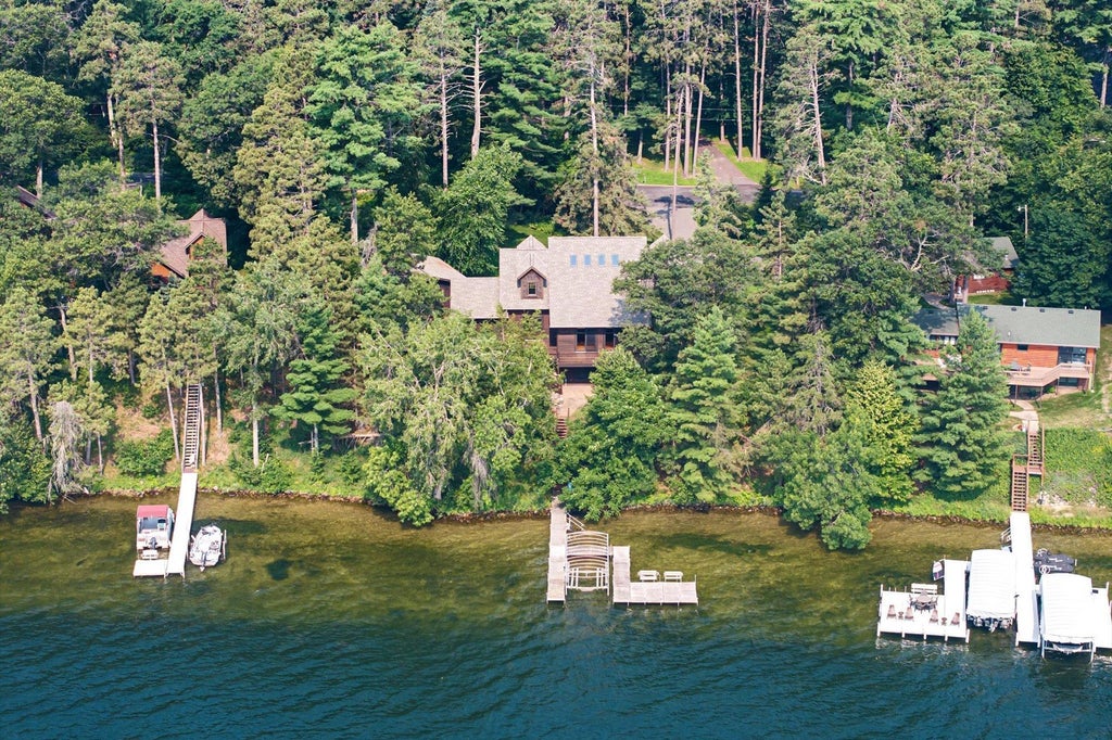 Discover the ultimate lake life experience in this impressive 6-bedroom, 4-bathroom home, perfectly positioned on 117 feet of pristine sandy shoreline along the Whitefish Chain. This expansive 1.11-acre wooded lot, featuring mature pines and hardwoods, includes a perfect 10 beach, ideal dock drop-off at the end of the dock, breathtaking easterly sunrise views, and two back lots across the road, complete with a substantial 40 x 30 pole building for all your storage needs. This custom Arts and Crafts-style home delivers everything you are looking for in a lake home. Enjoy the luxury of one-level living in an open floor plan adorned with hardwood floors and striking knotty pine accents. The main level boasts a magnificent floor-to-ceiling stone fireplace in the lakeside living room, a kitchen outfitted with stainless-steel appliances, and a dining area that showcases stunning lake views. The expansive screened porch overlooking the lake invites you to relax. The primary bedroom suite features a spacious walk-in closet and double sinks in the three-quarter bathroom. Additionally, you'll find another bedroom, a half bathroom, and a well-equipped laundry room with ample custom cabinetry for storage on the main level. The upper level is designed for comfort and convenience, featuring a loft area with skylights that overlooks the lakeside living room, two inviting bedrooms, and a full bathroom—perfect for accommodating guests. The walkout partially finished lower level offers two bedrooms with egress windows and a finished bathroom, while the remaining space is ready for your finishing touches. Take advantage of the lakeside deck or patio to unwind with your favorite drink. This prime property is strategically located just off West Shore Drive, offering you immediate access to the best amenities Crosslake has to offer. Indulge in exceptional restaurants, diverse retail shops, premier golf courses, and extensive hiking and biking trails. Seize this opportunity to own this Cross Lake property that serves as your gateway to an active and enjoyable lifestyle on the Whitefish Chain.