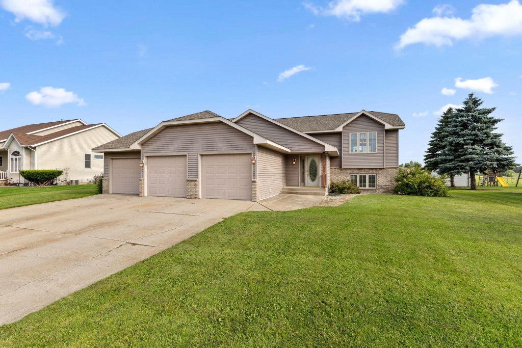 Wonderful 3BR/2BA home featuring a private backyard with pond views. This property boasts an open-concept, ample natural light throughout, vaulted living room ceiling, six-panel doors, raised-panel kitchen cabinets, and walk-in closets in all bedrooms. Enjoy a heated three-stall garage, a large driveway for additional parking, a 12’x10’ storage shed, a spacious great room with a gas fireplace, and new carpet throughout the lower-level. This home is a must see!