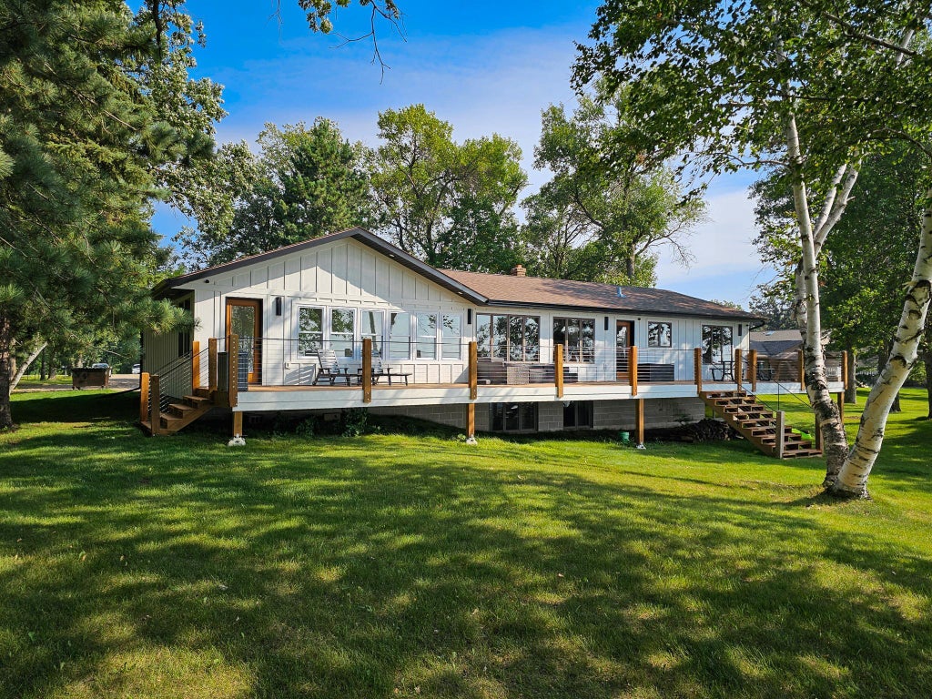 FULLY REMODELED BUCHANAN LAKE HOME! Experience the perfect blend of Modern Design, High-End Finishes, and Pristine Living on Buchanan Lake! Situated on a 0.65-Acre Lot, this property offers Ideal Tree Coverage and 100 Ft. of Sugar-Sand Frontage with a Newly Landscaped Beach & Riprapped Shoreline. Move-In Ready & Fully Remodeled in 2025, this Home feels Brand New. Nearly every detail has been updated, including All-New Flooring, Carpet, High-Quality Fixtures, and Abundant Windows framing breathtaking Lake Views. The Kitchen boasts All-New Cabinetry, Stainless Steel Appliances, and a Large Center Island with Quartz Countertops. All Bathrooms have been completely rebuilt with New Vanities, Sinks, and Showers for a Fresh, Modern Look. The Finished Full Basement adds a Family Room & Wet Bar, along with New Beds & Baths, all supported by a Brand-New Septic. Mechanical upgrades include a New Central AC, Heat Pump, Electrical, and Attic Insulation, providing Year-Round Comfort. Exterior improvements match the quality inside—Smart-Board Siding, Soffit with Smart Lighting, Gutters, Trim, and Egress Windows. The 816 SqFt Maintenance-Free Deck provides the perfect space for entertaining while overlooking the Lake. Treat yourself to the finer luxuries of life with effortless Lakeshore Living and experience Buchanan Lake at its best!