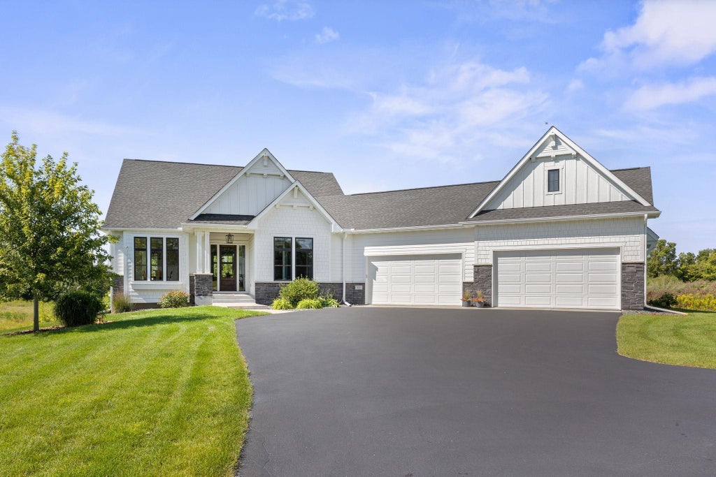 Cedar Lake west facing walk-out rambler on nearly 7 acres! This 4 bedroom, 4 bath home boasts all of the amenities: 2 fireplaces, custom built-ins, coffered & vaulted ceilings, hardwood floors, granite countertops, tile backsplash, wet bar, bead board, custom wainscoting, zoned in-floor heat in lower level and master bath, 10' main floor and 9' lower level ceilings, 4 season porch, exercise room, 4 car insulated garage and so much more. Professionally landscaped, asphalt drive. Cul-de-sac lot on natural environmental Cedar Lake. Meticulously maintained - move right in, it's all here!