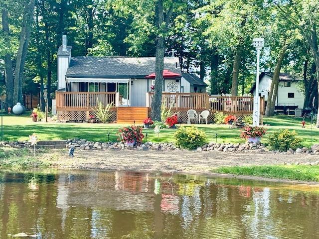 Adorable seasonal cabin on a prime location with a sandy beach and panoramic views of the lake. Newer deck and shade awning to enjoy the outdoors at your private retreat. Neighbors on both sides are farther away than most locations. Storage shed, space to add on and possibly space for a garage or addition to house. Crawl space can be insulated to make it year round with a heat source. Fireplace needs a new damper. Lovely vaulted ceilings give this charming cabin a grander feel when you walk in. Maple cabinets, LVP floors, and bath was remodeled in 2019. Newer roof, beach area, perennial gardens. Dock and lift sold separately. Most inside furnishings included.