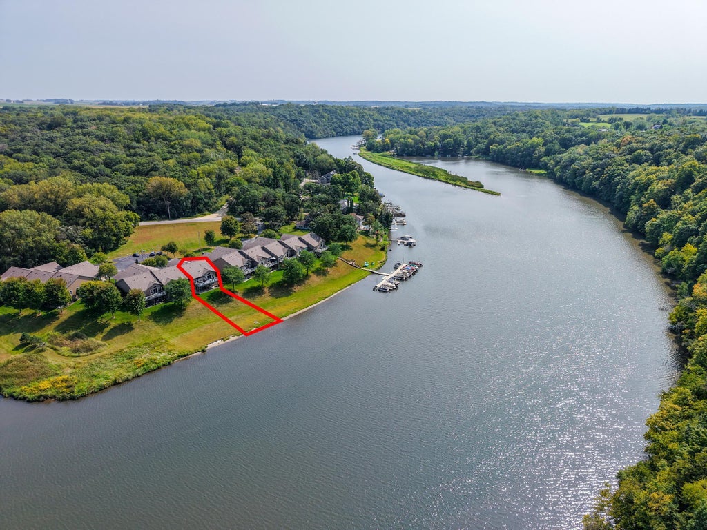 If you have been dreaming of living on the lake, now is the perfect chance to make it a reality in this absolutely stunning property located on Lake Zumbro! This immaculate end-unit townhome offers 3 bedrooms, 3 bathrooms (all with tile, granite countertops and heated floors), 2-stall heated garage (2 extra stalls available), and all high-end finishes with a breathtaking view of the lake. Be amazed stepping into the main level which features 8-foot interior doors, Brazilian pecan hardwood floors, custom walnut cabinets, granite countertops, large pantry, ample storage throughout, gas fireplace, spacious primary bedroom with walk-in closet and primary bath with a jetted tub, laundry, and a 3/4 bath. Outside you will be on a 10x30 composite deck with a power awning as you enjoy the panoramic views. The lower level continues to impress with a huge 3rd bedroom, another full bath, family room with a beautifully tiled gas fireplace, wet bar with a kegerator, corked floor bonus/workout room with an Infrared sauna, and a large separate storage room. The walk-out leads to a covered patio, dock, boat slip, and private boat launch. Relax while the HOA takes care of the exterior maintenance (roof, paint, gutters, downspouts, siding, decks, garage doors, lawn, shrub, tree, snow removal, dock, and sanitation). This one-of-a-kind property is truly move-in ready and can be yours today!