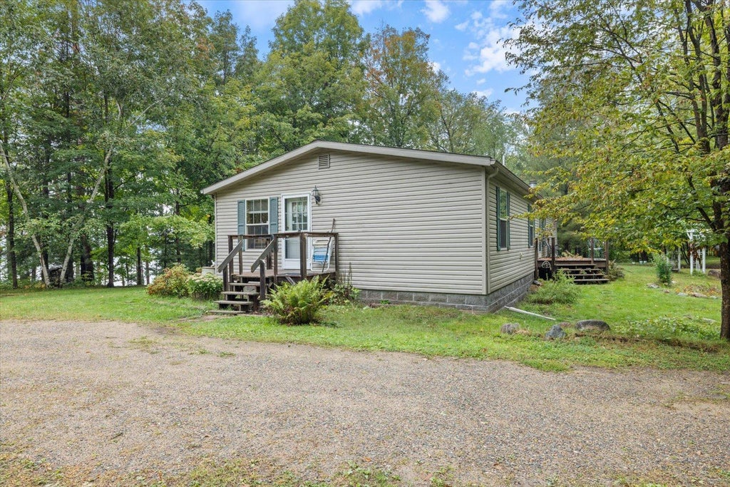 Set on 1.38 acres at the end of a quiet dead-end road, this 2005 three-bedroom, two-bath home offers privacy, abundant wildlife, and direct access to one of the area’s premier lakes. Inside, you’ll find a spacious master suite with a large walk-in closet, a cozy wood-burning fireplace, and comfortable one-level living. The detached two-stall garage includes an extra room—perfect for a bunkroom, workshop, or hobby space. A compliant septic system adds peace of mind, while the wooded lot provides a serene up-north setting. Whether you’re seeking a full-time residence, weekend getaway, or affordable way to enjoy highly desirable Trout Lake, this property checks all the boxes.