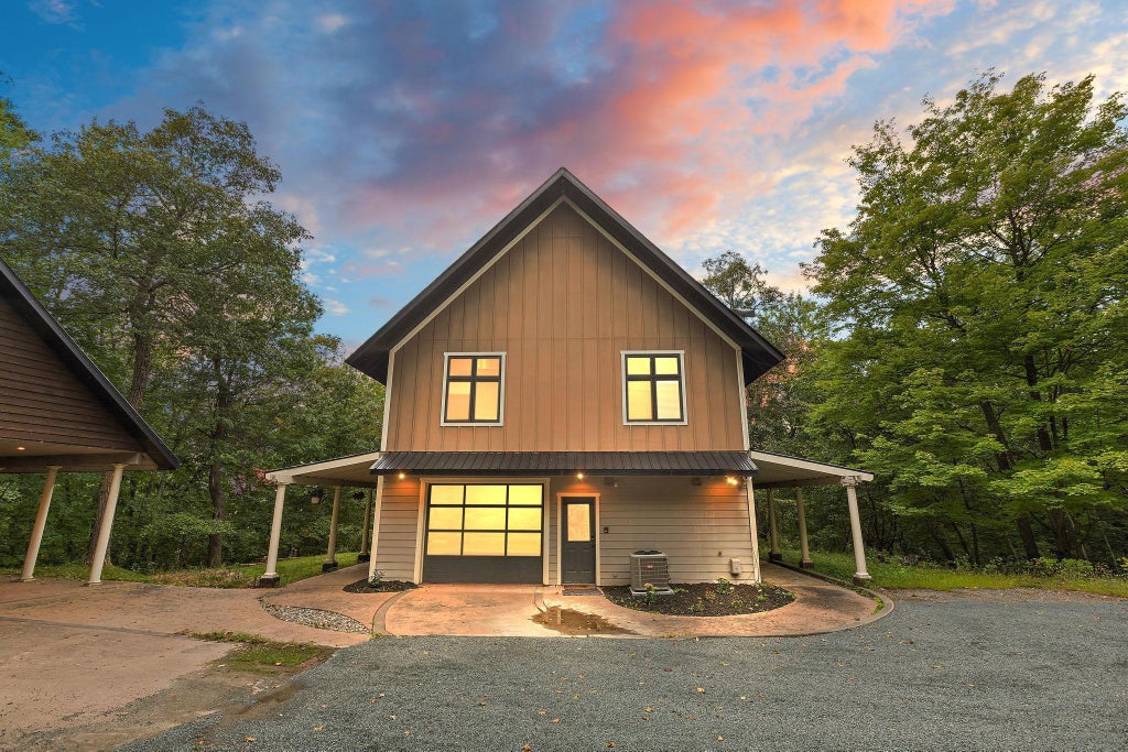 This one-of-a-kind quality home is sure to please anyone wanting something different from your standard cookie-cutter home. Uniquely designed architecture and amazing attention to detail. From the stamped concrete floors and driveway, to the 10’ ceilings, handcrafted doors, butler pantry, and carriage house, this home is a must-see. Enjoy the scenic master suite views featuring a large private tub, WIC with laundry, and a glass shower. The long wooded driveway adds to the seclusion you will find on this beautiful 5.5 ac lot. The open concept floorplan features in-floor heat along with Pella windows, central vac and central air. A large wrap-around screened-in deck is ideal for entertaining and offers great views of Lotus lake. The beautiful tucked-in glass “display” garage door adds to the unique characteristics of this home. The loft above the carriage house is great for storage or could be converted into additional space.