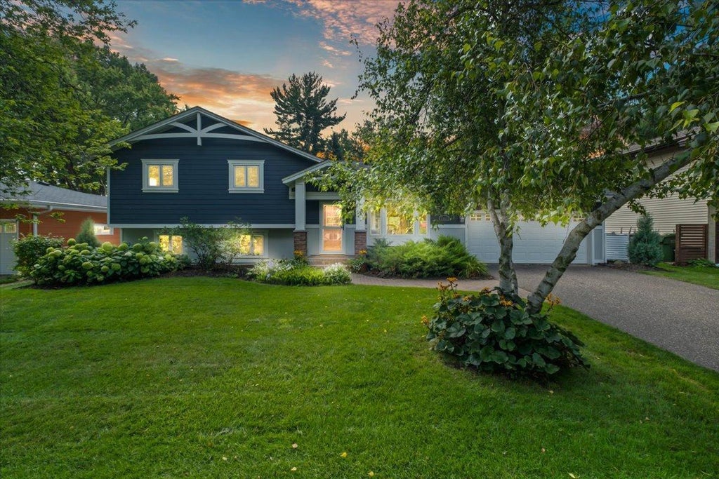 This beautifully reimagined four-level split home, transformed by renowned Shelter Architecture in 2019, blends thoughtful design with modern function in the heart of New Brighton. Offering 3 bedrooms, 3 bathrooms, and two distinct living rooms, this home hosts both function and style in a coveted neighborhood with deeded access to Long Lake and placement in the Mounds View School District. At the heart of the home is a large, open-concept kitchen, a showcase of the Shelter renovation. With rich hickory floors, sleek quartz countertops, and a generous center island, the kitchen creates a visual and functional anchor with sightlines extending throughout the main levels. The kitchen includes stainless steel appliances, wine fridge, and large custom cabinetry built in for a pantry, office, and coffee/appliance area. A bright dining room at the back of the home overlooks the backyard and deck. The main floor family room addition is filled with southern light and features a cozy gas fireplace. On the upper level are all three bedrooms, including a full bath and a private primary suite with its own updated ¾ bathroom. The garden-level family room provides a second gathering space with tall ceilings, a second gas fireplace, and walkout access to the lush backyard. The lowest level includes a finished laundry area, a flexible space for a workout room, and more storage. Enter through the attached two-car garage into a thoughtfully designed transition space, featuring a mudroom, a large closet, and a walk-in pantry, adding everyday convenience and ample storage right where you need it most. Step outside to your private backyard oasis, surrounded by tall arborvitae trees for privacy. Enjoy the shade of a joyful crabapple tree and the vibrant colors of sunflowers and zinnias among established perennials. Spend evenings on your deck or head across the street to Long Lake to take advantage of the shared dock, beach, and recreational waters. Meticulously maintained by the sellers since 1984. This is an opportunity to live with architectural intention and natural connection!