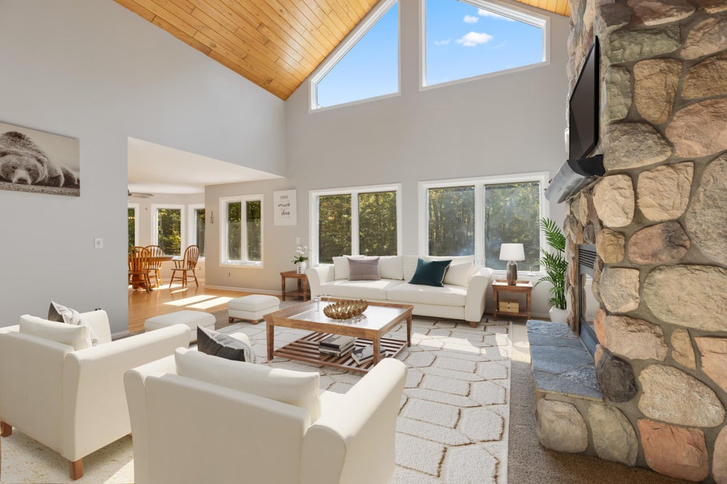 Exceptional Brainerd property offering generous indoor and outdoor living spaces. This home features 6 bedrooms, 4 bathrooms, a home office, loft, and two impressive floor-to-ceiling stone gas fireplaces. Expansive windows provide serene views of surrounding wildlife, while the spacious deck and walkout basement with in-floor heat open to a large patio area for outdoor enjoyment. The kitchen is appointed with quartz countertops, and the main floor layout ensures convenient living. Additional amenities include an attached heated garage, pool table, dumbwaiter, and high-speed fiber optic internet. Situated on 3+ wooded acres, the property provides ample space for a future garage or pole building. New Owners enjoy shared access to South Long Lake directly across the street, offering opportunities for boating, fishing, swimming, and recreation. Ideally located near Brainerd’s shopping, dining, golf, and year-round outdoor activities, this property combines privacy, comfort, and convenience.