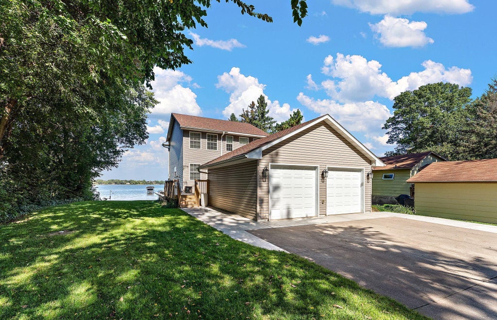 Experience the lake lifestyle you’ve always wanted in this beautifully updated 4-bedroom home, featuring 75 feet of sandy shoreline, your own private dock, and breathtaking water views — the perfect setting for summer fun and year-round enjoyment. Spend your days swimming, fishing, tubing, and jet skiing, then cruise across the lake to Smokey’s BBQ for dinner or meet friends at the popular sandbar known as “The Whiskey Flats.” Seasonal lake events such as the Lake-Wide Water Balloon Fight and annual Boat Parade make this an active, vibrant community you’ll love being part of. Inside, the home offers an updated primary bathroom, newer carpet, and a spacious lakeside deck ideal for grilling and gathering. The walkout lower level features in-floor heat and a full bar — perfect for hosting guests or enjoying cozy evenings by the water. Numerous improvements have been made in recent years, including fully remodeled bathrooms with custom cabinetry and new countertops/sinks (2023), a primary suite remodel with an oversized soaking tub, new gutters (2023), fresh carpet in the basement and upstairs closet (2024), an extended concrete driveway with new front sidewalk and backyard access (2024), new front and interior garage doors (2024), three new lakeside windows on each level of the home (2025), and a new refrigerator (2025). These updates provide peace of mind and enhance the home’s style, comfort, and functionality. Whether you’re looking for a weekend retreat or a full-time lakefront residence, this property offers a rare combination of four bedrooms, a private dock, sandy shoreline, stunning views, and a convenient location — all set within one of the area’s most sought-after recreational lakes.