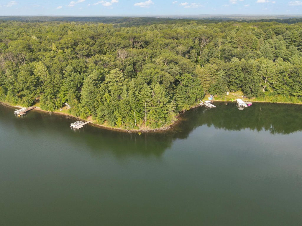 A truly unique opportunity - available to the public for the first time in 34 years! Located on the highly sought-after Ward Lake, this exceptional property features a stunning one acre lot that wraps around a point and into a private bay, offering over 200 feet of shoreline and a large sandy beach. Ward Lake is also known for its great fishing, making it ideal for anglers and outdoor enthusiasts alike. The west-facing cabin provides breathtaking sunsets and sits on a rare lot with diverse elevations, perfect for creating multiple outdoor spaces and entertainment areas. Enjoy high vistas with panoramic views, mature trees ideal for hammocks and relaxation, cozy private spots for conversations or bonfires, and a spacious yard for outdoor games and gatherings. Inside, the cabin offers an open layout designed for hosting, with 3 bedrooms and 2 bathrooms. Recent updates include: 2023: New floating dock, and a new water heater; 2022-2023: Refreshed bathrooms, new light fixtures throughout; 2020: Full exterior and interior repaint. The property is ideally situated close to the McKenzie Lake and Ice Age Trail system, with easy access to a number of popular lakes and charming towns nearby - including Frederic, Cumberland, Luck, and Balsam Lake. Less than a two-hour drive from the Twin Cities, this location combines peaceful seclusion with convenient access. This is a once-in-a-lifetime chance to own a peaceful, private retreat with incredible potential and room to make it your own. Don't miss this rare gem on Ward Lake! Pontoon and Dock included with the sale. All indoor and outdoor furniture included with the sale.