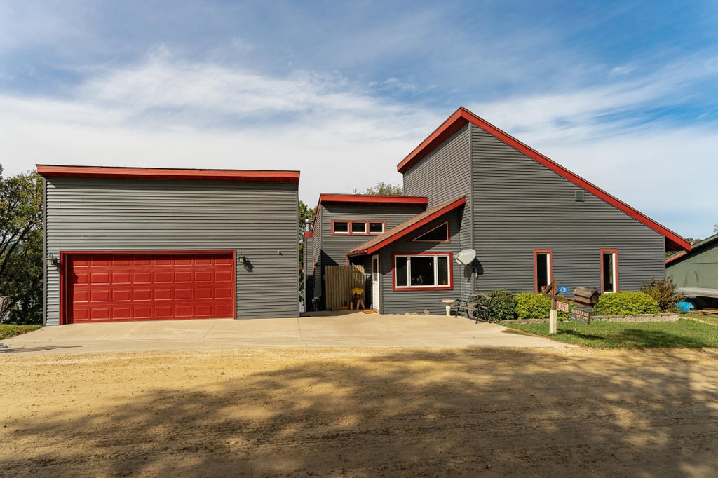 Welcome to this spacious and beautifully designed 3-bedroom, 2-bath home featuring an open-concept main level perfect for entertaining and everyday living. This unique layout includes two primary bedrooms, one boasting a walk-in closet and the other, stunning lake views. The large kitchen offers plenty of counter space and storage, ideal for any home chef. In the upper level is a great office space and walk in storage area. Step into a very generously sized entry that sets the tone for the rest of the home. The walk-out lower level is an entertainer’s dream, complete with a cozy fireplace, wet bar with refrigerator (easily convertible to a kegerator), a convenient 3/4 bath and third bedroom. You'll also find a large laundry area with abundant extra storage. Enjoy the outdoors on tiered decks overlooking the nicely landscaped yard. A spacious garage completes this fantastic property, combining comfort, function, and style. Great views of Lake Zumbro from the home and from the lakeside deck and also on the dock which stays with the home.